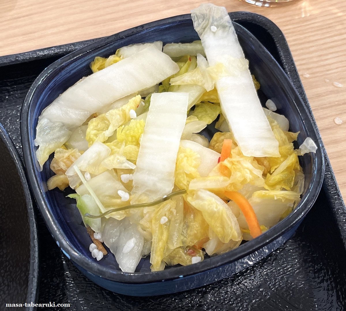 お新香は吉野家にはずっと前からあり、昔は牛丼と一緒に良く頼みましたが最近は少なくなったかな。から揚げのような脂っこいものと一緒に食べるには良い感じでご飯との相性も悪くない。お新香を良く見ると白い米粒のようなものがありますが、これはご飯を落としたわけではありません(笑)白いコメみないなのは「麹」(もしくは「糀」)らしいです。