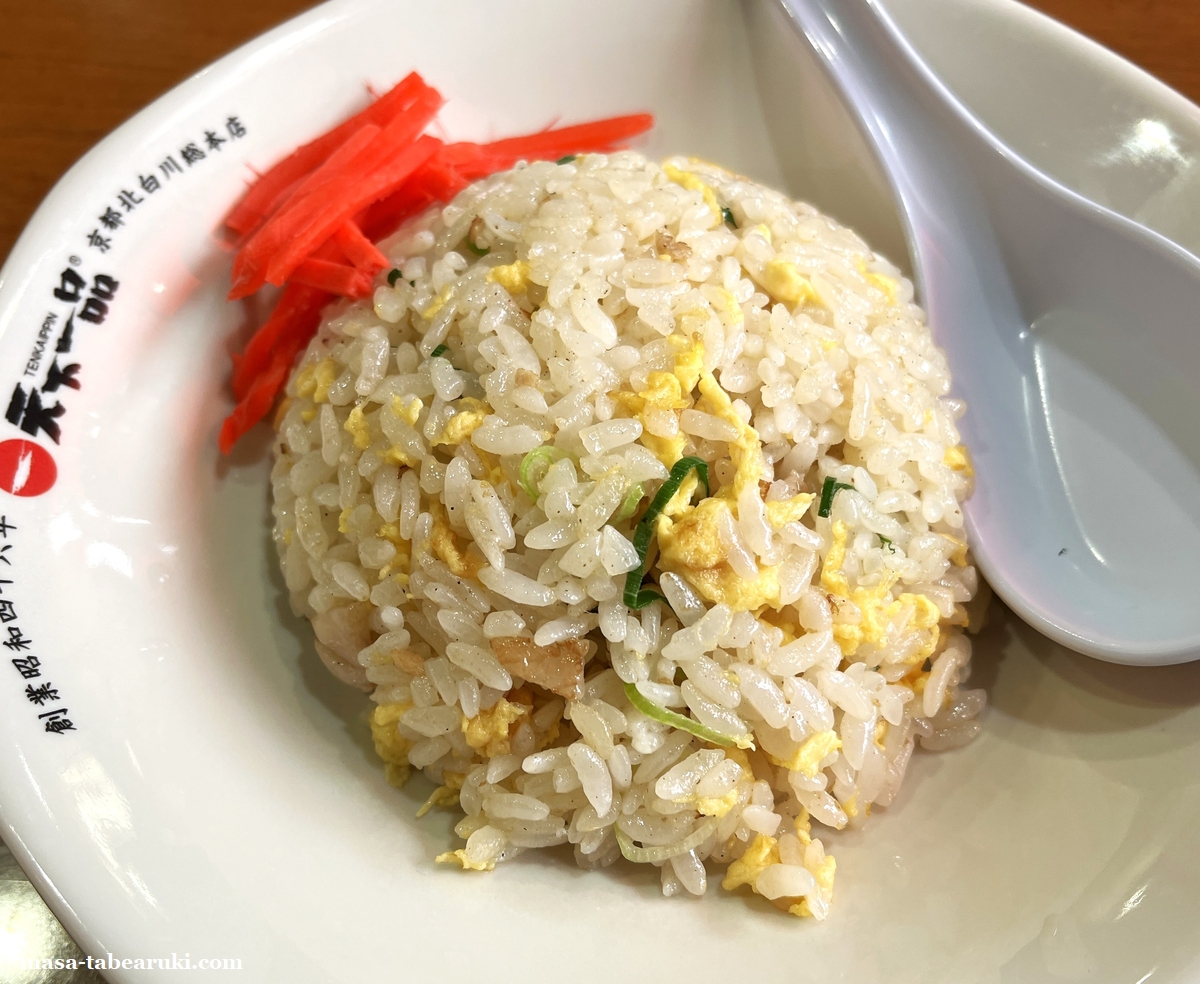 チャーハンはややオイリーさがあり、パラっとした口当たりも良く色は白っぽいながらしっかりとした味付けになっています。量的には一般的な半チャーハンくらいかと。