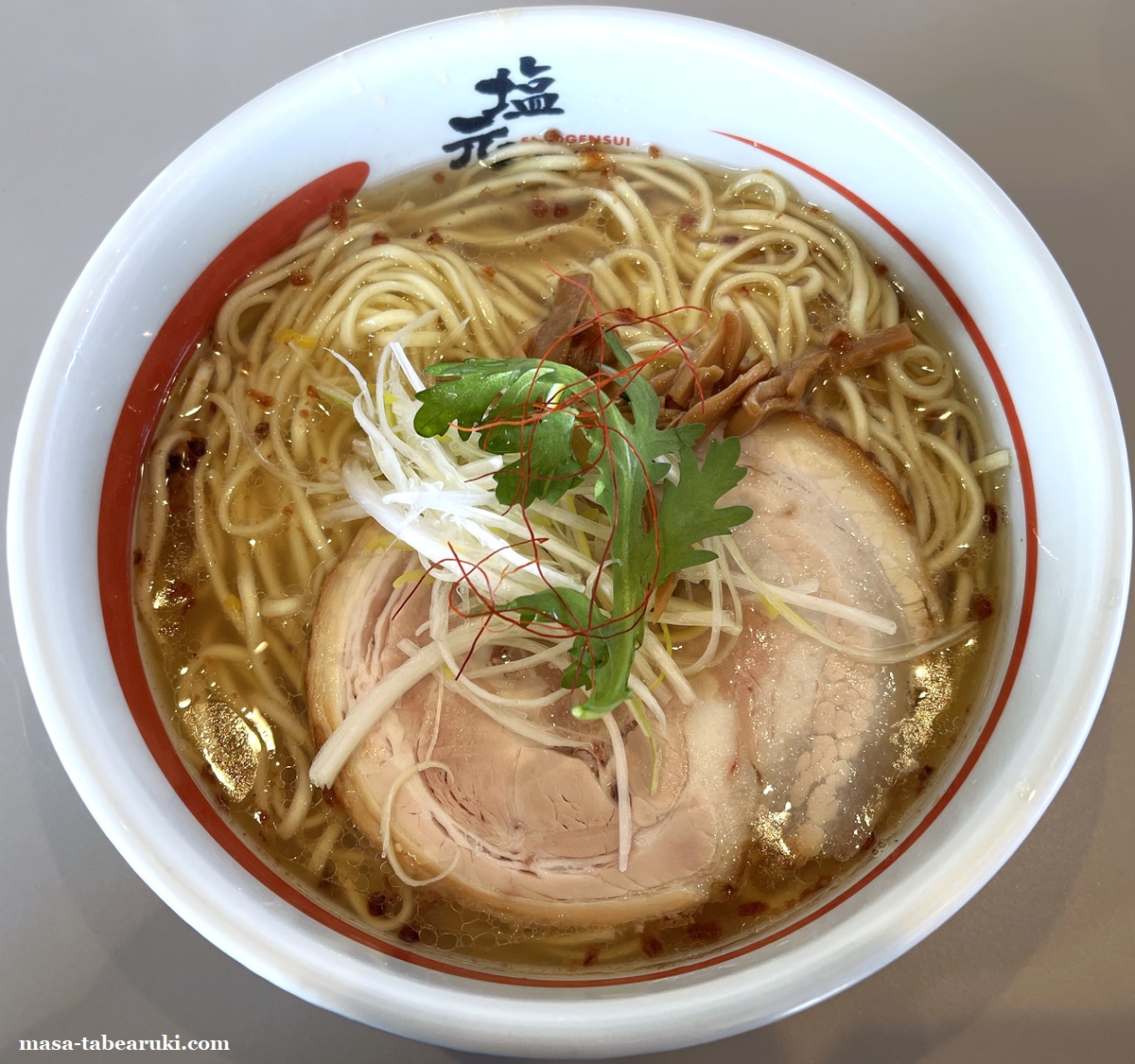 しかしメニューは他の店舗と同じだったので、今回は「天然塩ラーメン」を大で注文。待つこと数分で到着です。