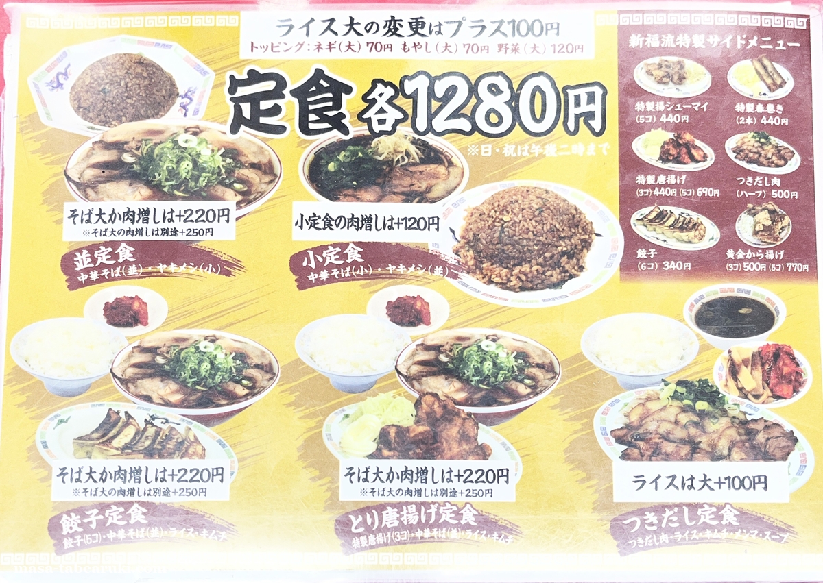 まずはメニューを確認してみると半年前と比べてラーメン単品は変わっていませんが、サイドやライスの価格は数十円アップしているものも。また定食に関しても30円ほどアップしており、まだまだ高騰の影響は続いているようです。