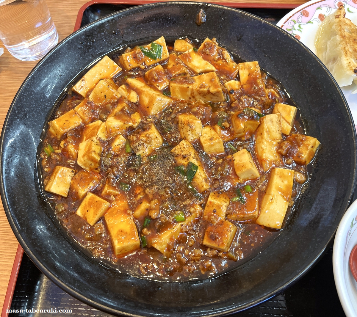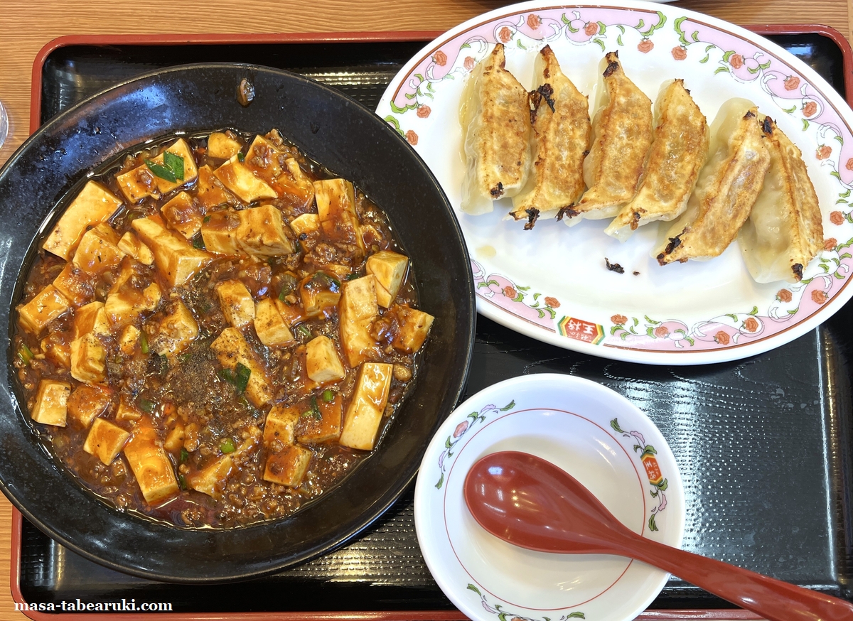 ただ、ホントはライスも付けたかったのですが、さらに価格が高額になるので今回は諦めることに。待つこと10分ほどで麻婆豆腐と餃子1人前が到着しましたが、何故か1人前は遅れて到着。