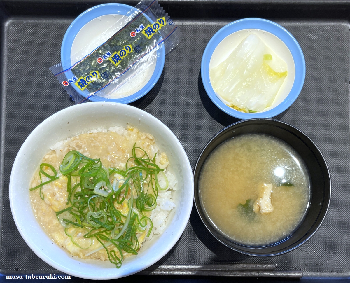 今回は朝食メニューとして提供されている「得朝鶏そぼろたまご丼」を食べてみました。朝食の提供時間帯以外でも鶏そぼろたまご丼として提供されているものの、朝だと海苔とお新香がさらについて価格は同じ。