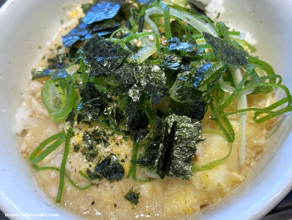 これはあくまでも”たまご丼”なので鶏そぼろの量はそれほど多くはありません。出汁も効いていますが、あっさりとした丼ものとなっているため朝に食べるのもちょうど良いかと。