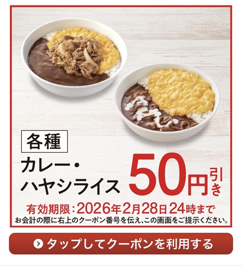 吉野家のアプリにもこの50円引きクーポンもあったのでもちろん利用。牛オム黒カレーには大盛の設定が無いものの、ご飯増量(税込55円)は可能なので、このクーポンを使用すれば増量分くらいにはなりますね。ただ今回私はご飯増量をしておりません。待つこと数分で到着です。