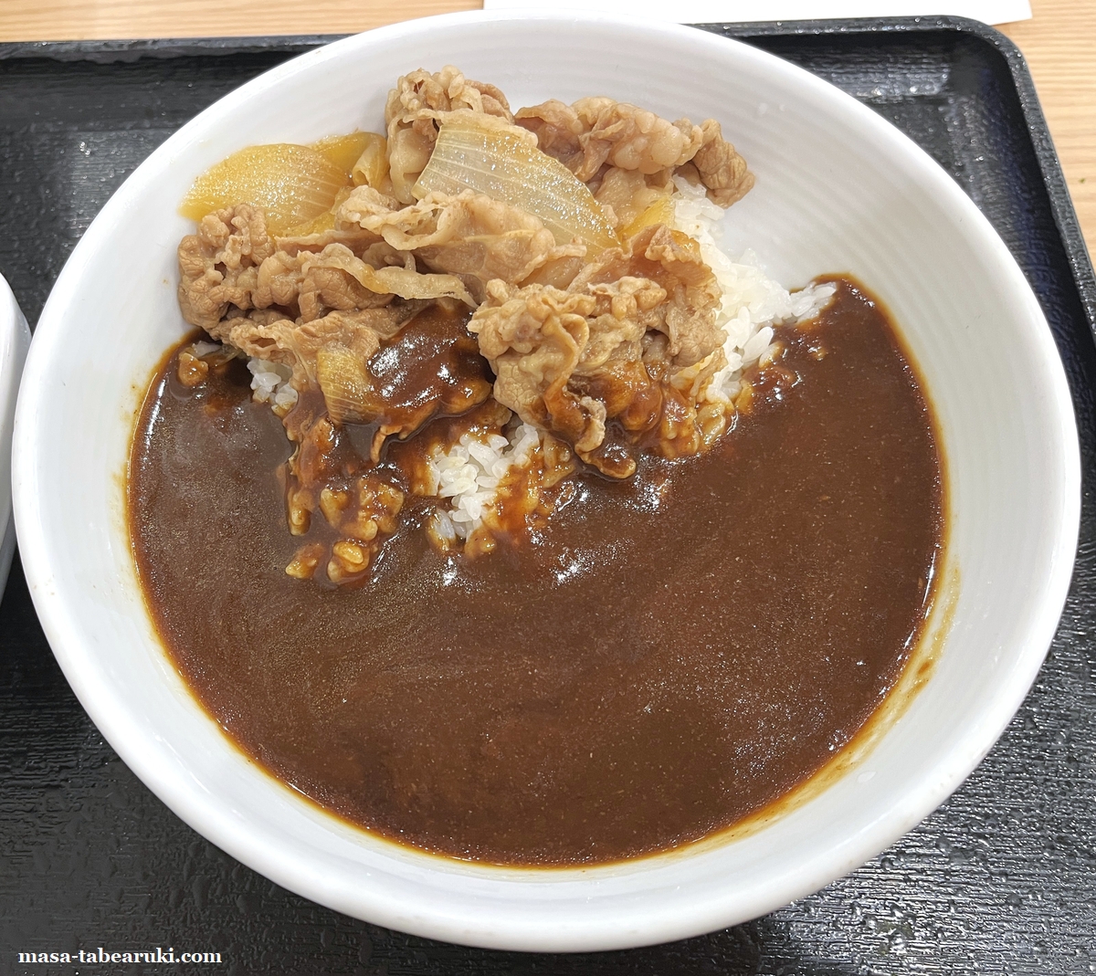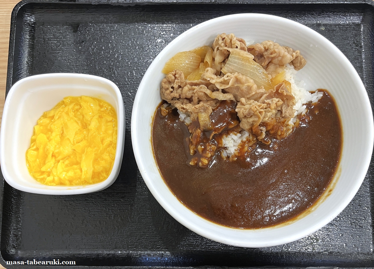 今回はここ数年、秋冬メニューとして提供されている「牛オム黒カレー」を食べてみました。スパイシーな黒カレーは牛丼の肉との相性も良く、さらにトロトロのオム玉子との相性もかなり良い印象。