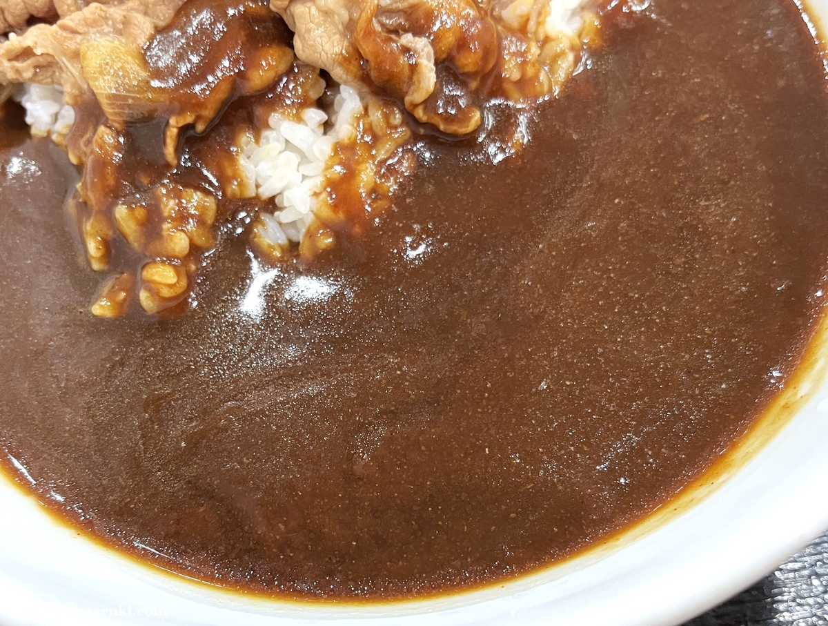 で、今回は吉野家の中でも個人的にあまり食べないほうであるカレーを食べてみることに。現在販売されているカレーは「黒カレー」となっており、ここ数年は秋冬メニューとして提供。ハヤシライスと一緒に販売されているように思えます。