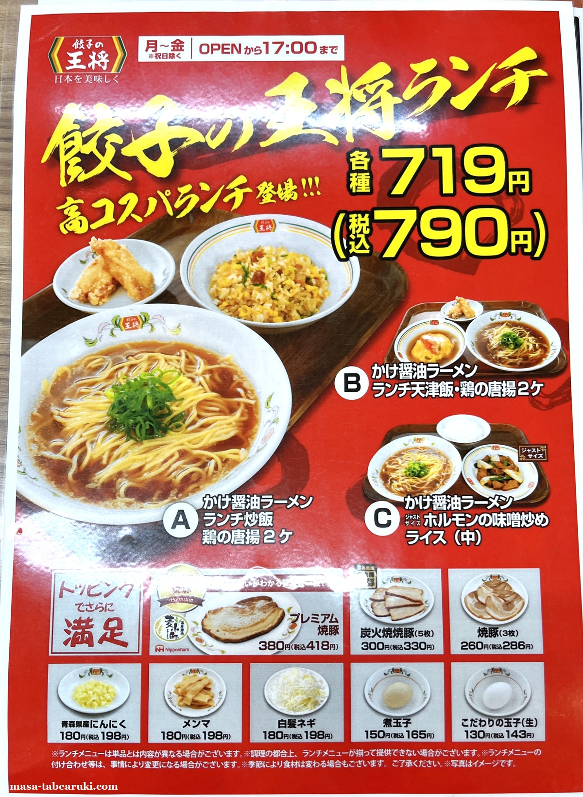 今回は前々からちょっと気になっていたメニューを食べようと考えていたのですが、そのメニューとはこの「餃子の王将ランチ」。
