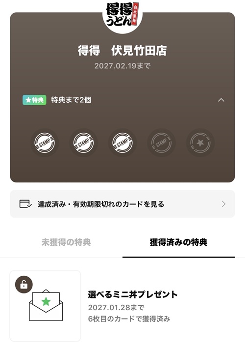 LINEのポイントは5ポイントで特典ゲットとなりますが、”得の日”は2倍になるため、得の日を狙って行けば最短3回の訪問で貰えます。2枚目に至っては2回の訪問でOK(3枚目からはまた3回)かと。まあ、そんなに得の日ばかりを狙って訪問というのは私も現場訪問があるのでなかなか難しいですけどね。。