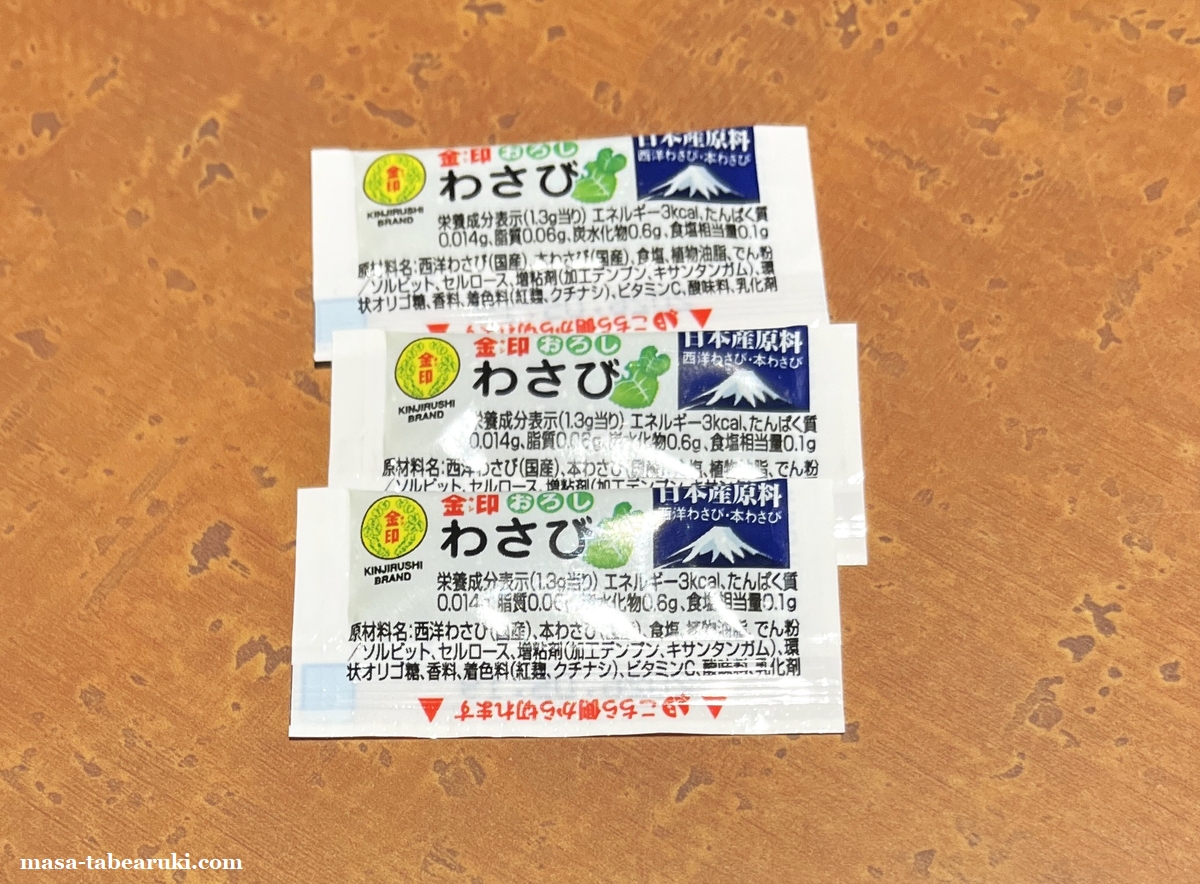 無料で頂けるものは頂こうとセルフコーナーにある天かす(ネギもある)もゲットし、ネギトロの場合はわさびも取ります。