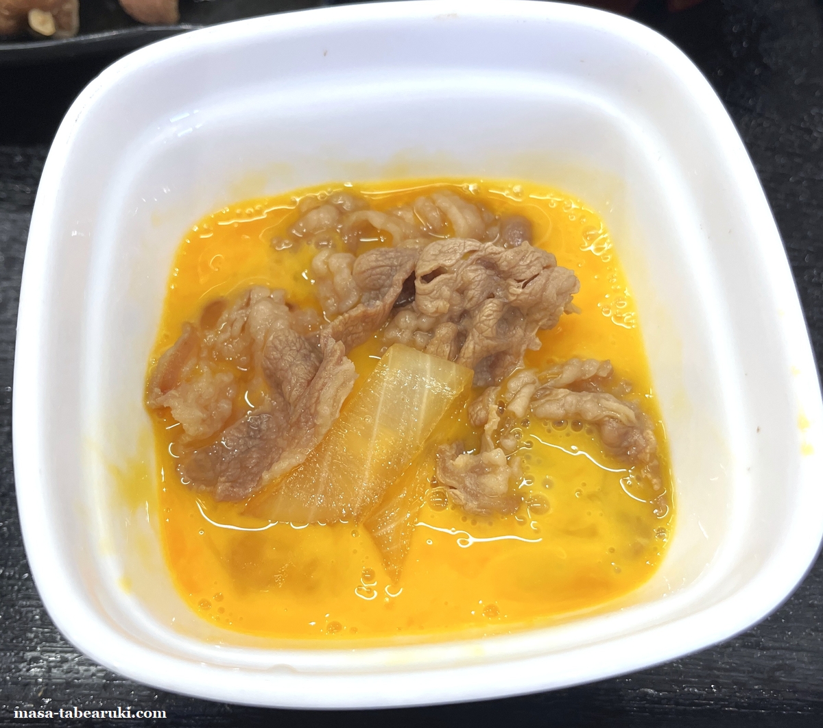 ➀のスキヤキ風に食べるのは簡単で生たまごに浸した肉をおかずにご飯をひたすら食べるだけ。ご飯はおかわり可能なので、これだけで一杯を食べ切っても良いかもしれません。