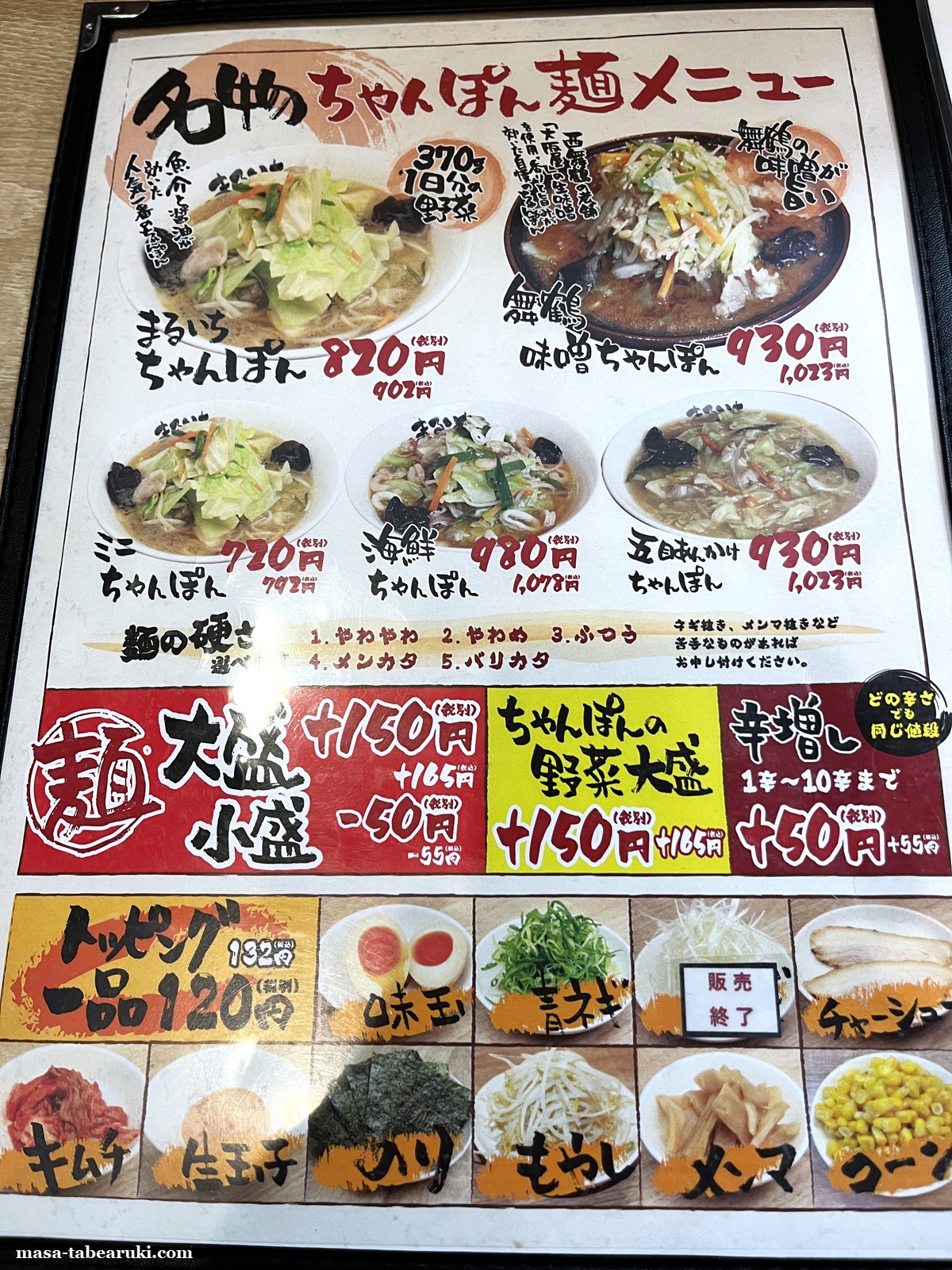 野菜をモリモリと食べたい人向けの一杯で、さらに野菜を摂取したい人は”ちゃんぽんの野菜大盛”があるので、これをやってみるとさらに食べられそう(どのくらい増えるのかは不明ですが)ですね。