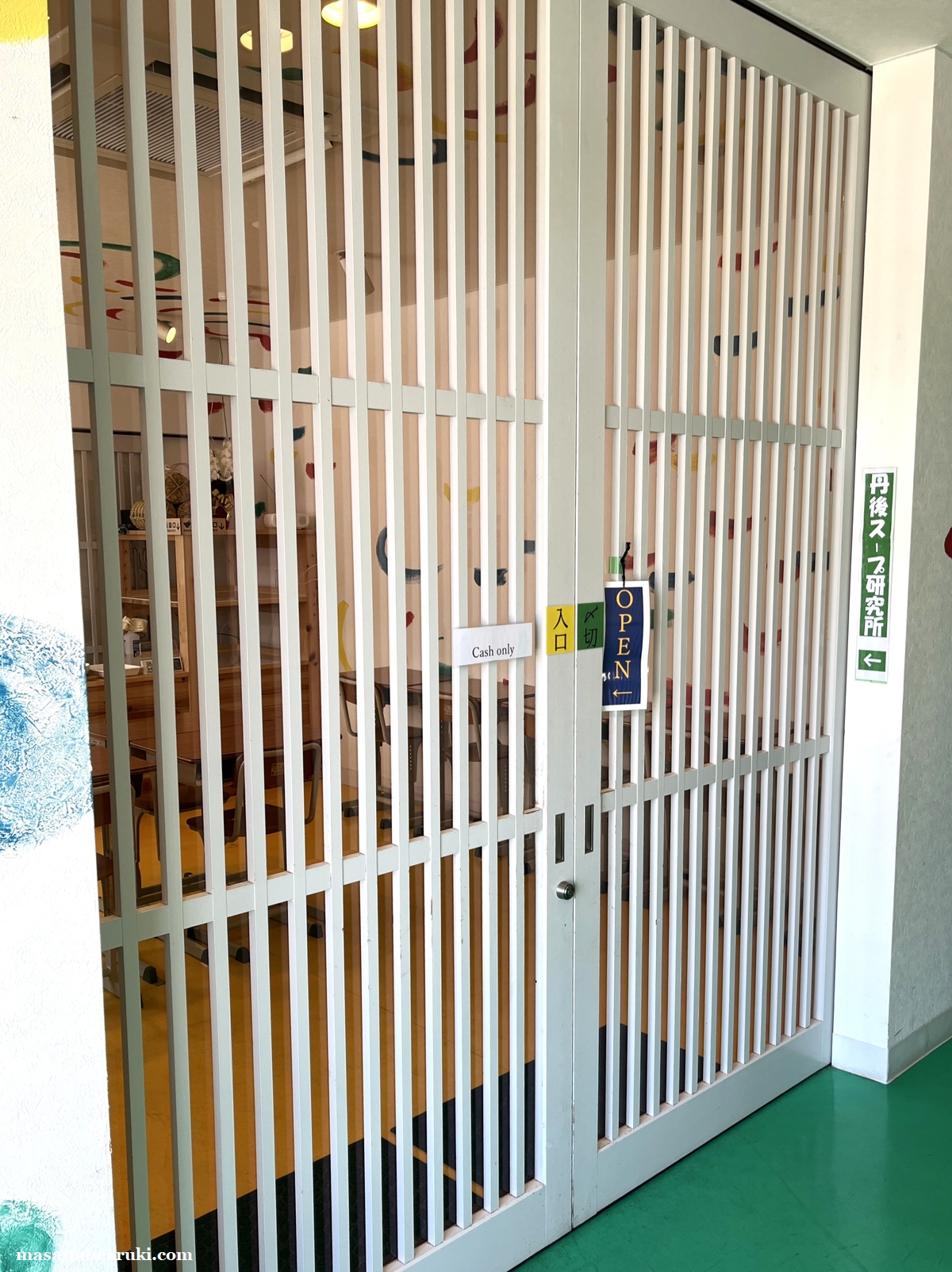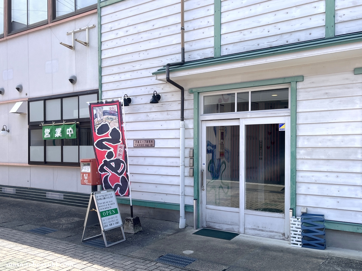 ラーメンの幟が無いとほとんど気付かないくらい小さい看板となっており、この建物なんか記憶にあるなあと思ったら、12年近く前に訪問した「丹後でダンゴ」というお団子屋さんがあった場所ですね。ではドアを開けて入ってみるとさらに中にまた扉があります。