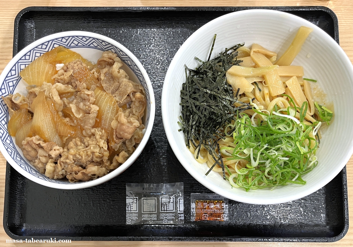 今回は2026年3月12日より発売となった「牛丼・油そばセット」を食べてみました。牛丼はいつも通りで油そばはちょっとあっさりめのタイプとなってはいるものの、牛丼と油そばを一緒に食べることにより満足感はアップしているように個人的には思えます。