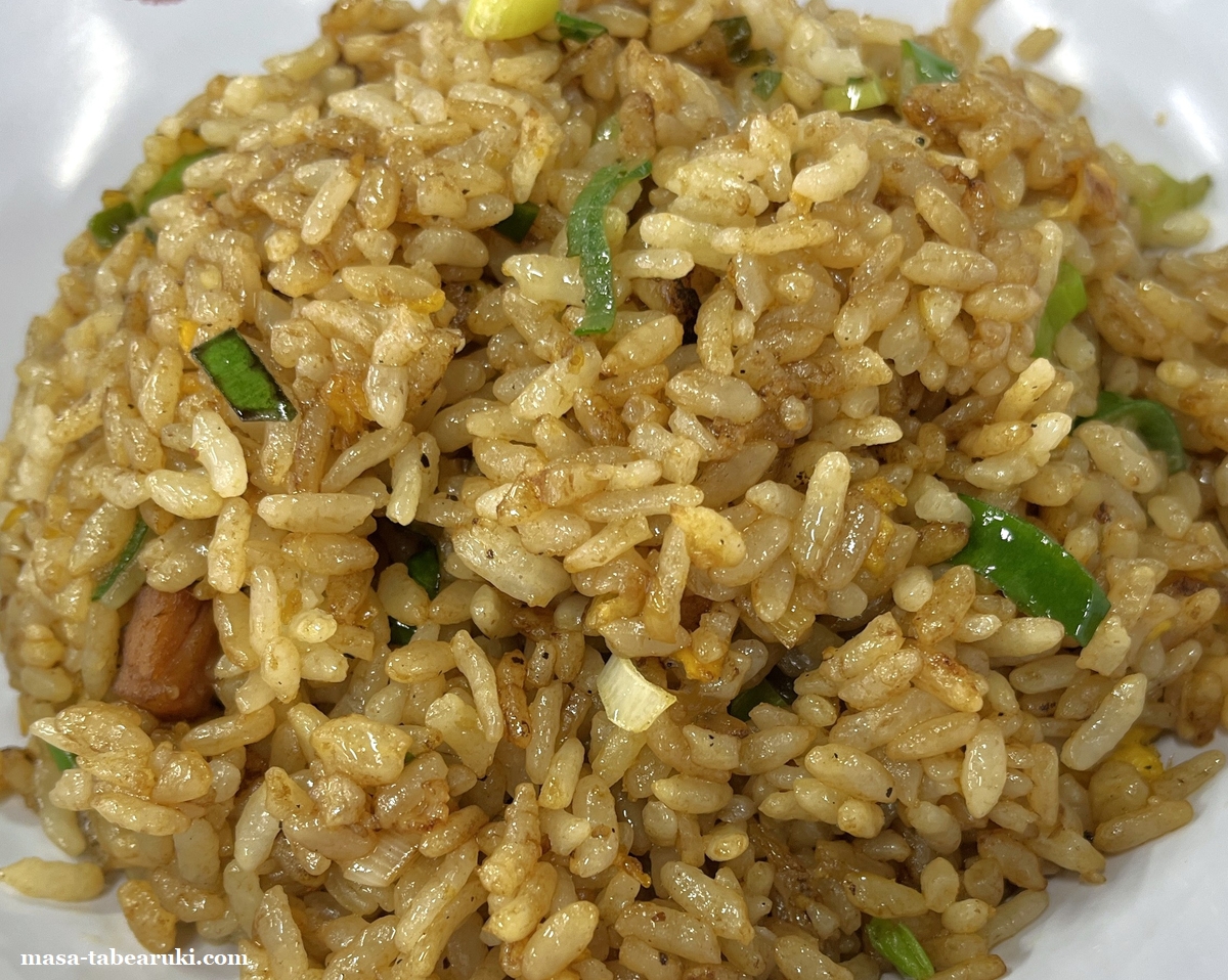 炒飯はパラっとした口当たりで味は濃いめとなっており、餃子の王将よりも味は濃い印象。量的にも餃子の王将とそう変わらないように思えます。