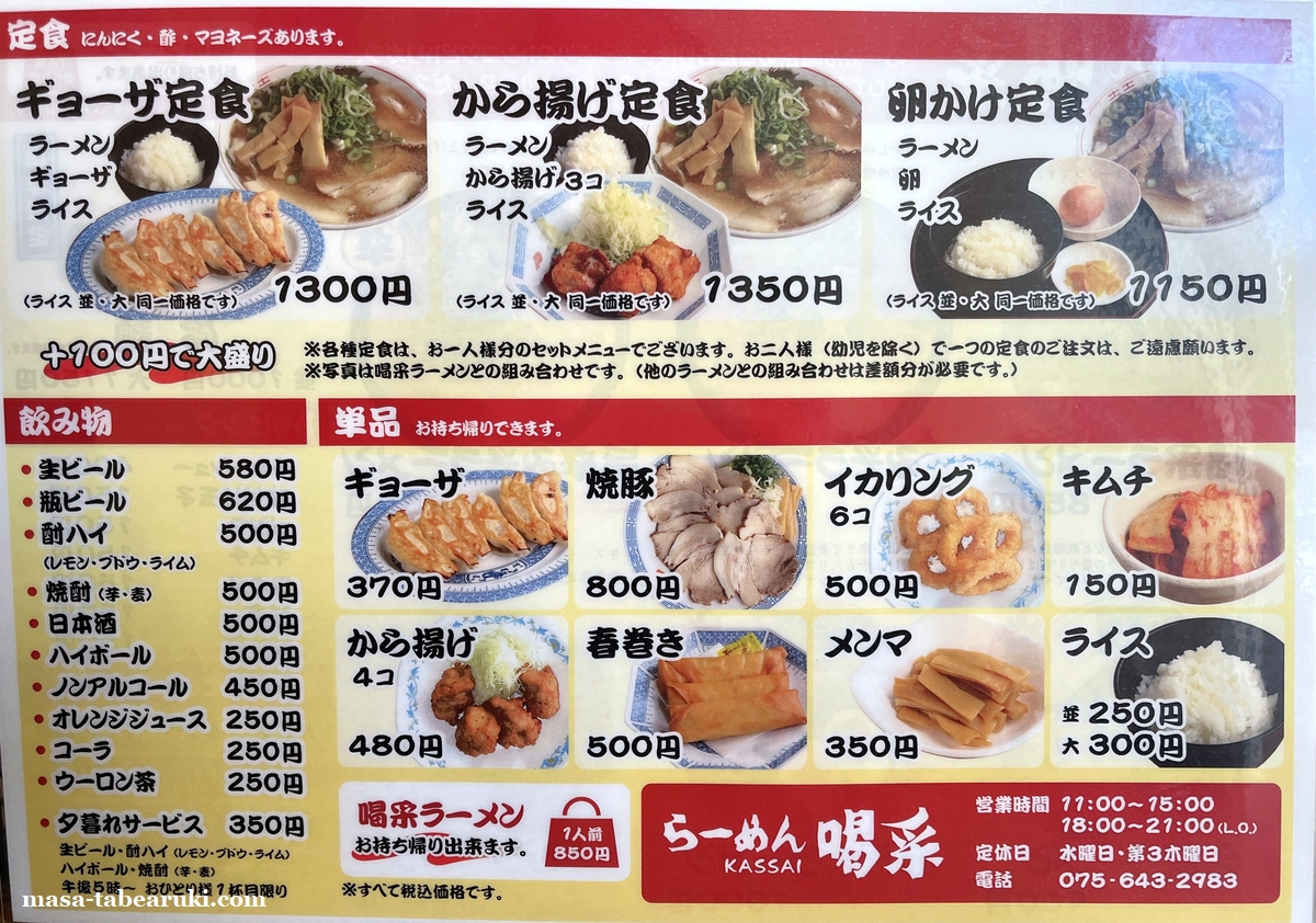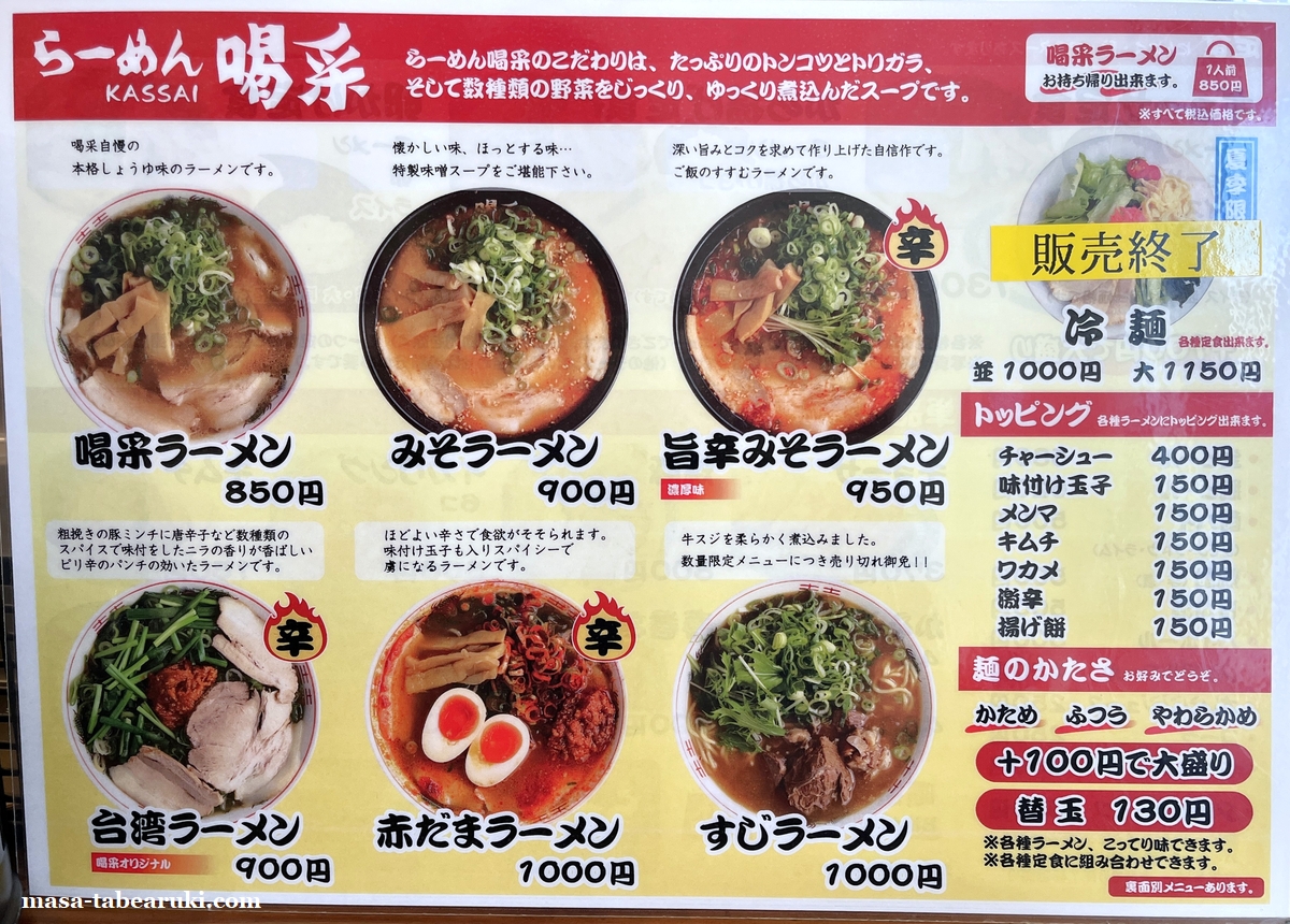 ラーメンは不動の6種類で私が初めて訪問した17,8年前から変わっていないと思いますが、少なくともブログを始めた15年前からは変わっていません。ただ定食のほうは2年半くらい前に入ったメニュー制限の影響もあり、現在では3種類のみ提供されています。