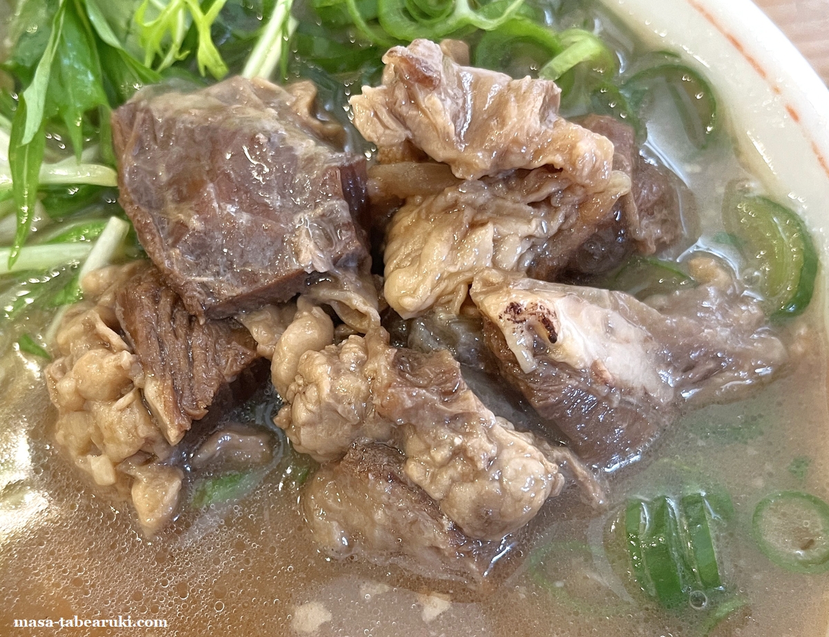 すじ肉は前回食べた時と同様に良く煮込まれており食感は非常に柔らか。味付けはあっさりめなのも変わっておらず、臭みなどはほとんど感じません。