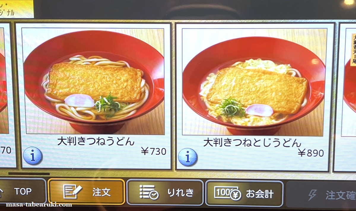 タブレットを見ながらLINEのクーポンもあるし、また大判きつねうどんにして選べるミニ丼をつけようかと思っていたんですが(700円以上注文する必要がある)、となりに何やら今まで見たことが無いのがある。。