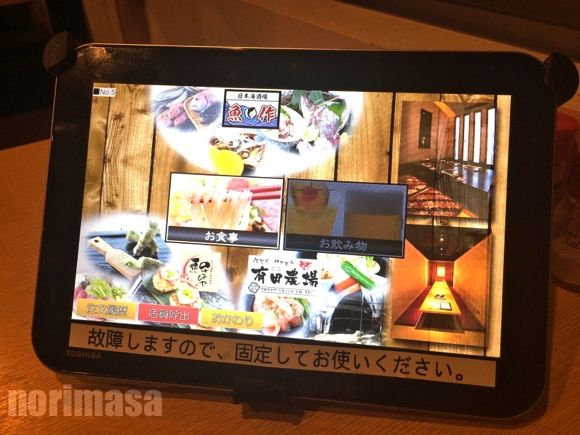 ビール2杯飲んで後はひたすらハイボールを注文しました。最初は薄いかな?っと思いましたが、最後のほうはちょっと濃いめになっていたように思います。タブレットには「濃いめ」の指定をするところはありませんでした。