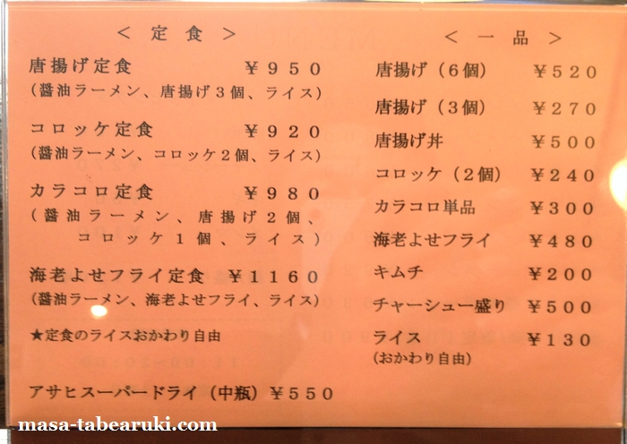 基本は醤油、にぼし、坦々のようだ。定食もありこちらはからあげ、コロッケ、えびが基本。そのなかでこちらを注文してみた。