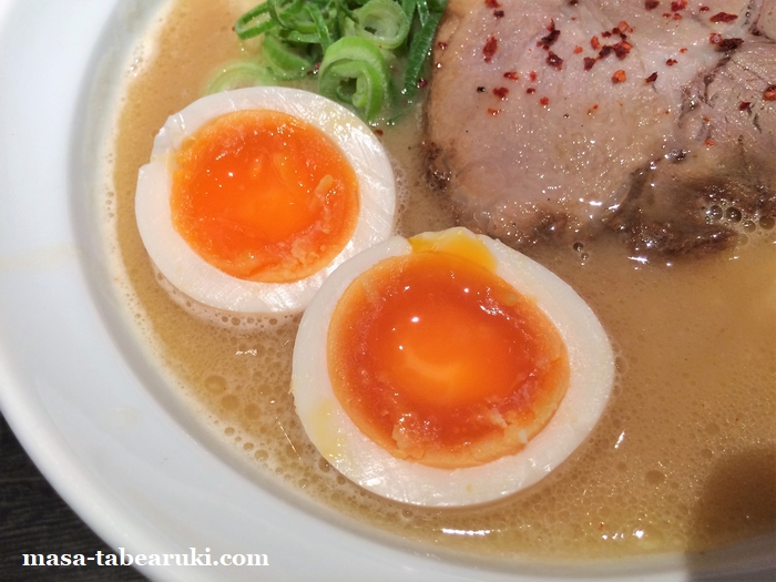 味玉はいつもと変わらず黄身部分に卵以外の旨味も感じます。半熟具合も申し分ありません。