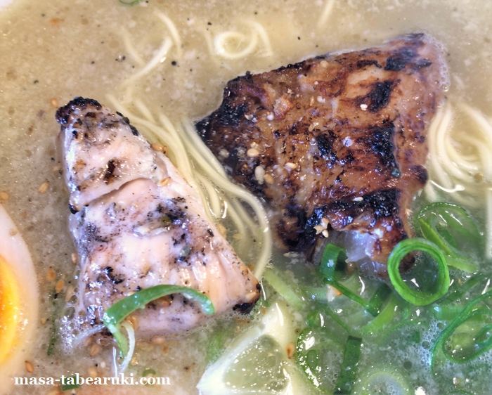チャーシューは鶏と豚の2種類ですが、今回は鶏がふたつ載っていたと思います。鶏も柔らかく良いとは思うのですが、やはり個人的には豚。外側がカリッとしており、中はトロトロの柔らかさが非常に好み。鶏を無くして豚だけにして欲しいと思ってしまいます。