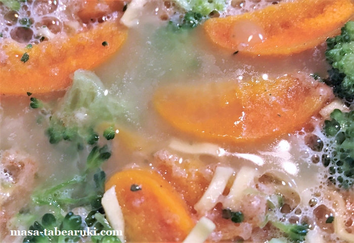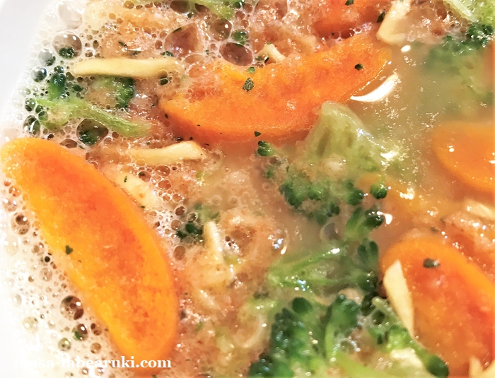 新具材と書かれた”ほぼウニ”。今回のウリはこれで食べると溶けて無くなる様な感じは雲丹にも思えます。ベースはお麩かな?と思いましたが、雲丹の風味もそれっぽい感じでなかなか面白い具材かと。スープもクリーミーで新具材との相性も良い具合ですが、ブロッコリーに関しては色合いは良いけど相性は?でした。