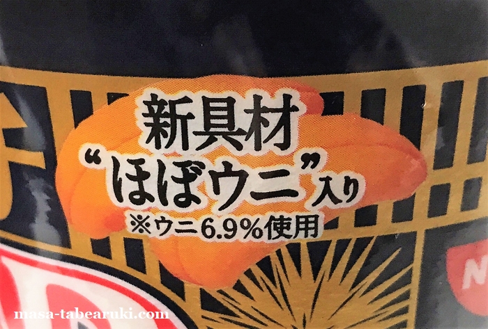 今回食べたカップヌードル リッチ 贅沢濃厚うにクリーム。新具材として入れらた”ほぼウニ”の再現度はなかなか雲丹の雰囲気も出ており良い印象。面白い新具材ですが、これを考えるのにメーカーの開発者の方は苦労したんだろうなあとも思えました。