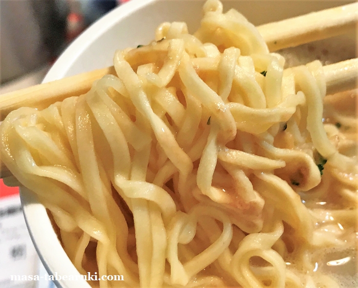 麺はいつものカップヌードルの麺ですね。ただビッグでは無いので量的には個人的に足りないかと。