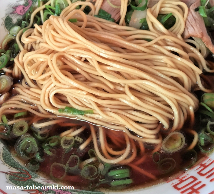 麺はパツンとした歯切れの良さアリ、スープはスッキリしたじんわりと旨い醤油