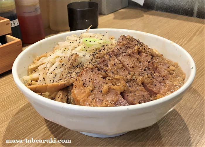 この日の同行者O君が食べていた極太系まぜそばです。麺は500gまで選べる様で彼は400gにして肉増しも頼んでいました。最近、この系統のラーメンにハマっている様です。
