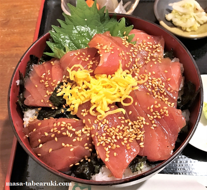 では過去3回の訪問で、お造り、鮪づけ丼、天ぷらと食べて来ましたが、再度「鮪づけ丼」を食べたいと思ったので注文。ご飯も大盛でお願いしました。待つこと5分ほどで到着です。