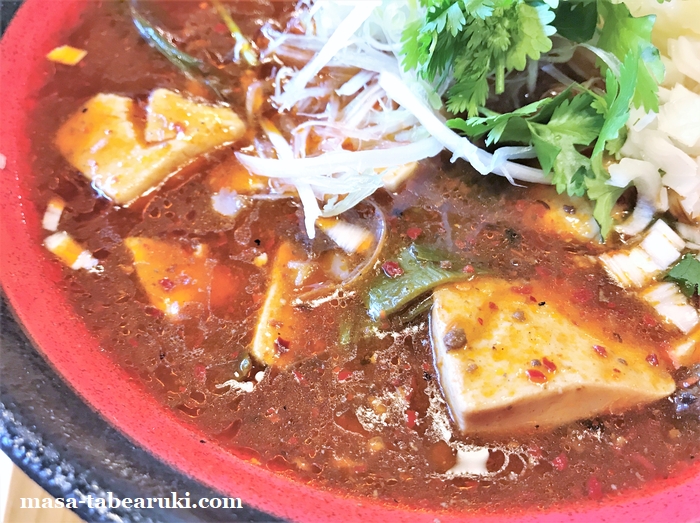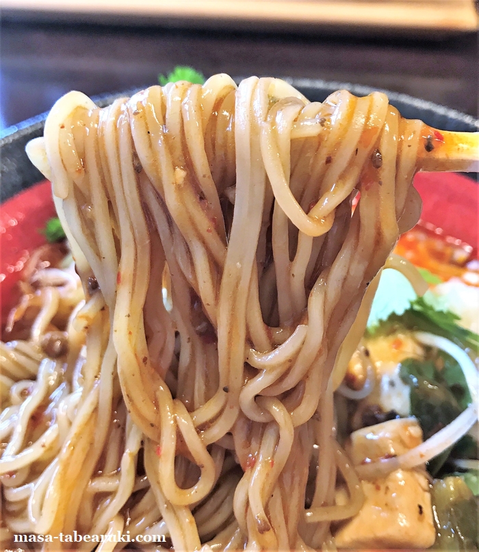 麺は細麺でなかなかしっかりとした食感があり、細麺ながらこの麻婆豆腐にも負けていない印象。外に「麺屋棣鄂」の麺箱が置かれていたので、こちらを使用されているのかもしれません。