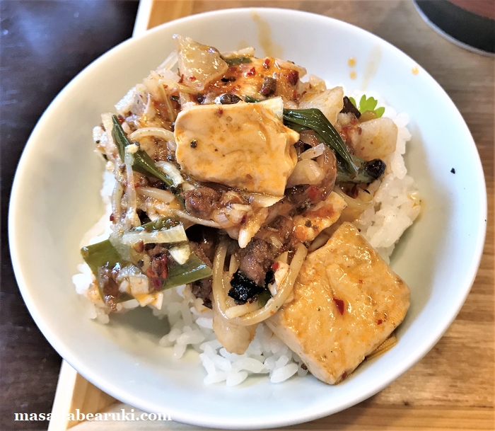 丼に投入してみました。ちょっと麻婆豆腐が多めですが、やはりこちらの方が旨い。