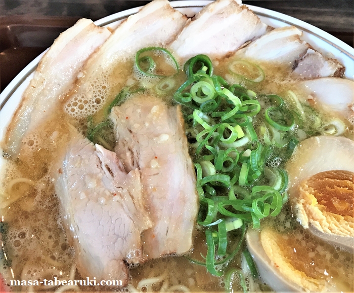 チャーシューは脂身と赤身のバランスの良いものが7枚くらい。デフォがどのくらいの量かは不明ですが、なかなか食べ応えもあります。