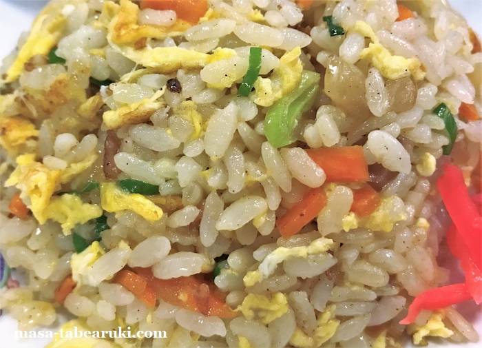チャーハン定食のチャーハンです。量は少な目ですが、パラッとした感じも良く紅ショウガとの相性も良い具合。個人的にこちらのチャーハンは好み。
