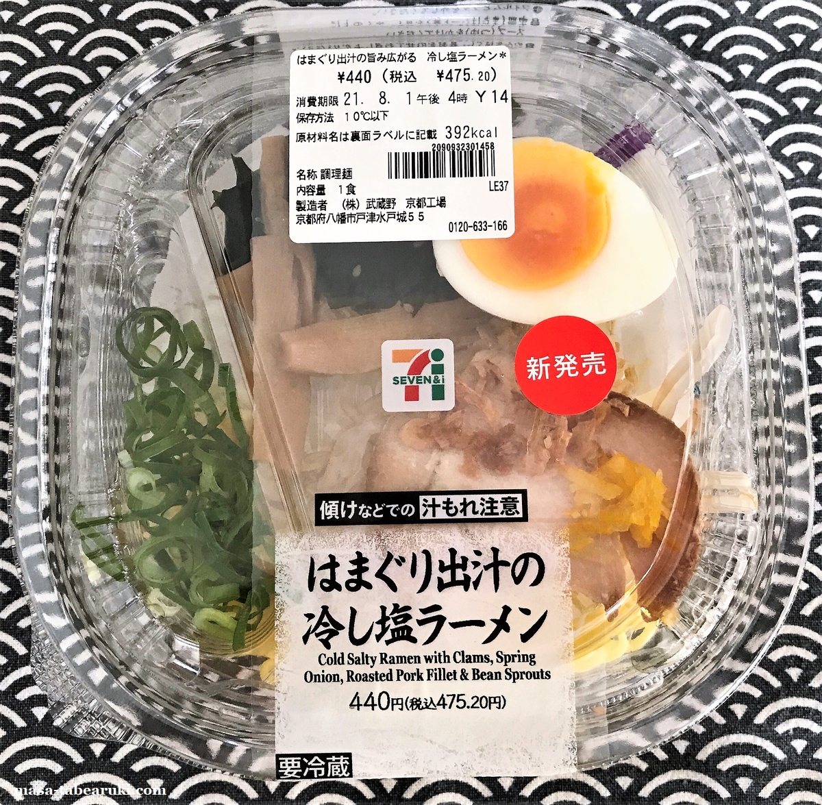 いや~最近はホントに暑い。。そんな時にピッタリの冷たさと旨さ!! はまぐり出汁の冷し塩ラーメン(セブンイレブン)
