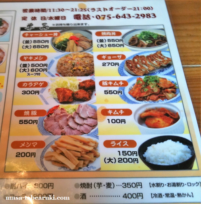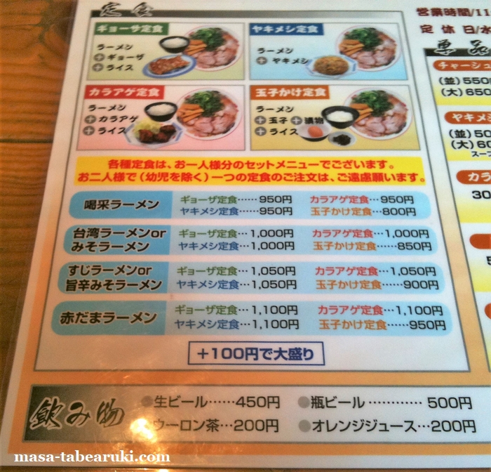 定食の方は増えていますが、ラーメンメニューに関してはホントに変わらないコチラのお店。下記はこの日撮った現在のメニューですが、さらに下のサムネイルは10年半ほど前のメニュー表です(クリックすると拡大します)。