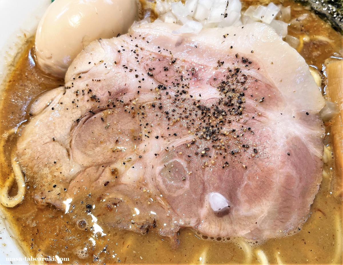 チャーシューは大きめサイズのものが1枚。個人的に最近はバラ肉の方が好きで、このタイプはそれほど好みでは無いかな。
