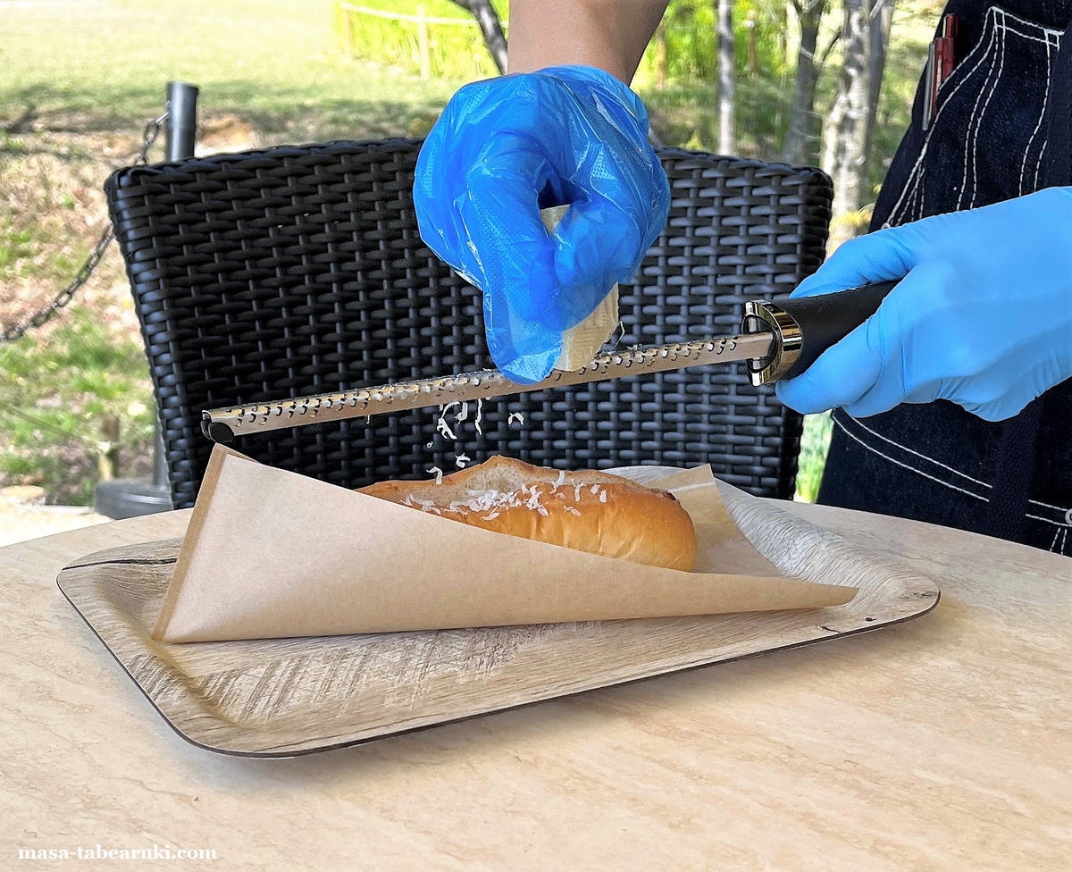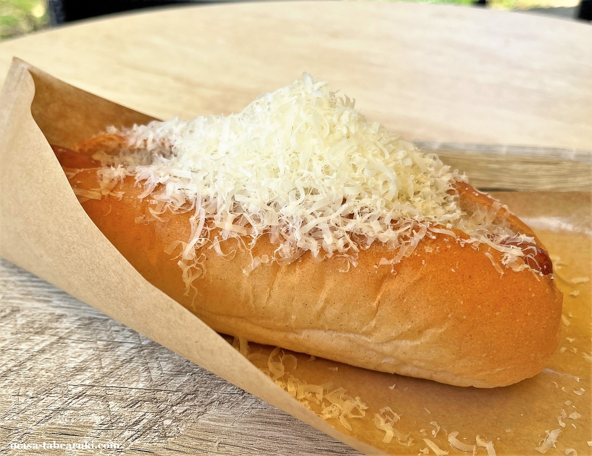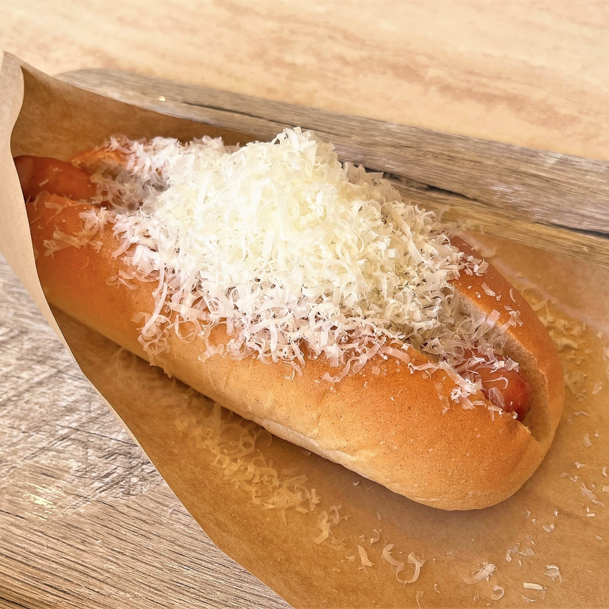 - 目の前でチーズを削ってくれるチーズホットドッグ